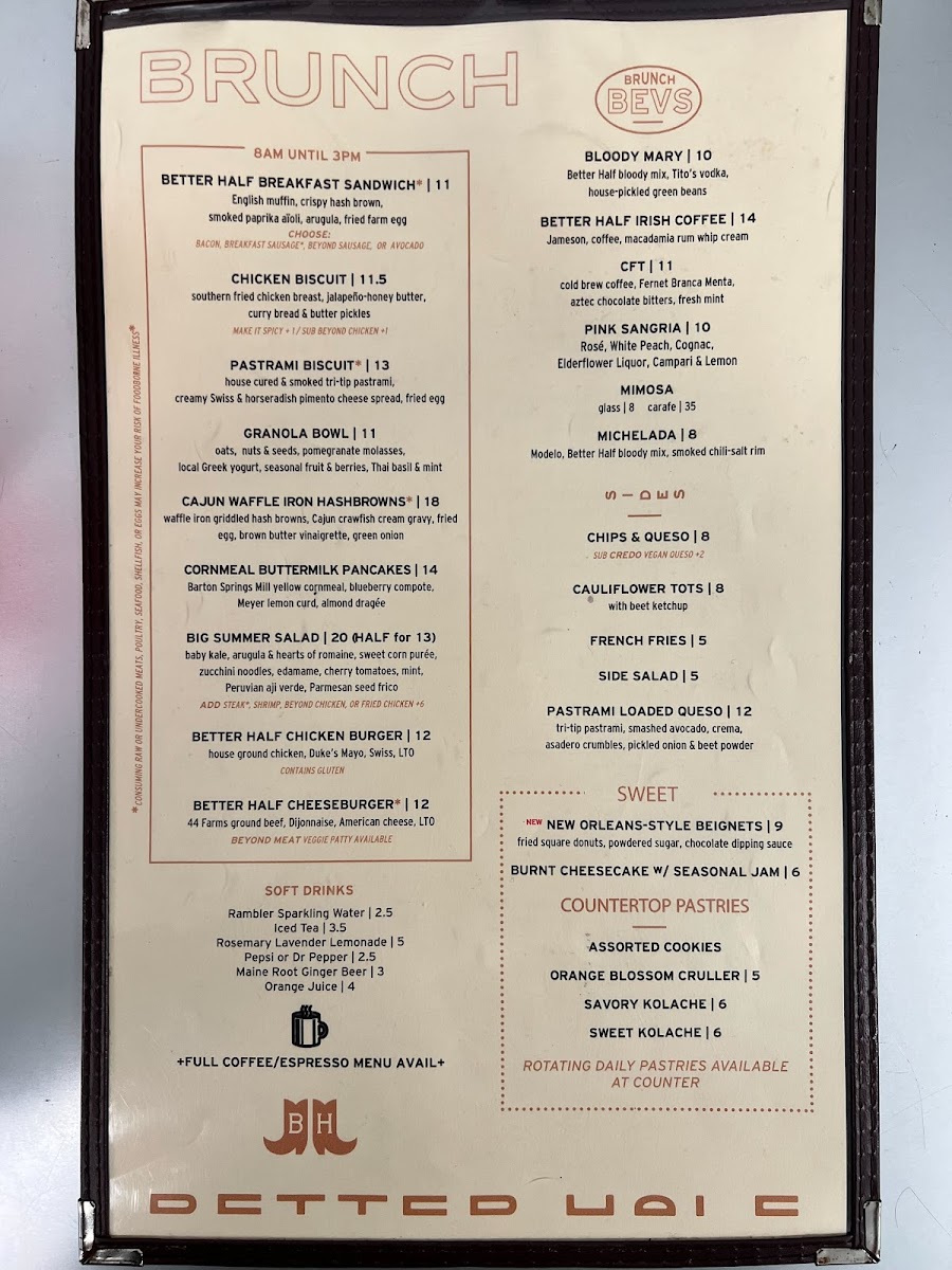 In essence, Better Half Coffee & Cocktails is not just a place to eat; it's a destination that combines great food, a lively atmosphere, and remarkable service. Whether you're in the mood for a leisurely brunch or a quick coffee fix, this establishment is guaranteed to satisfy your cravings and leave you wanting more. Don't miss the opportunity to experience what makes Better Half a gem in Austin!